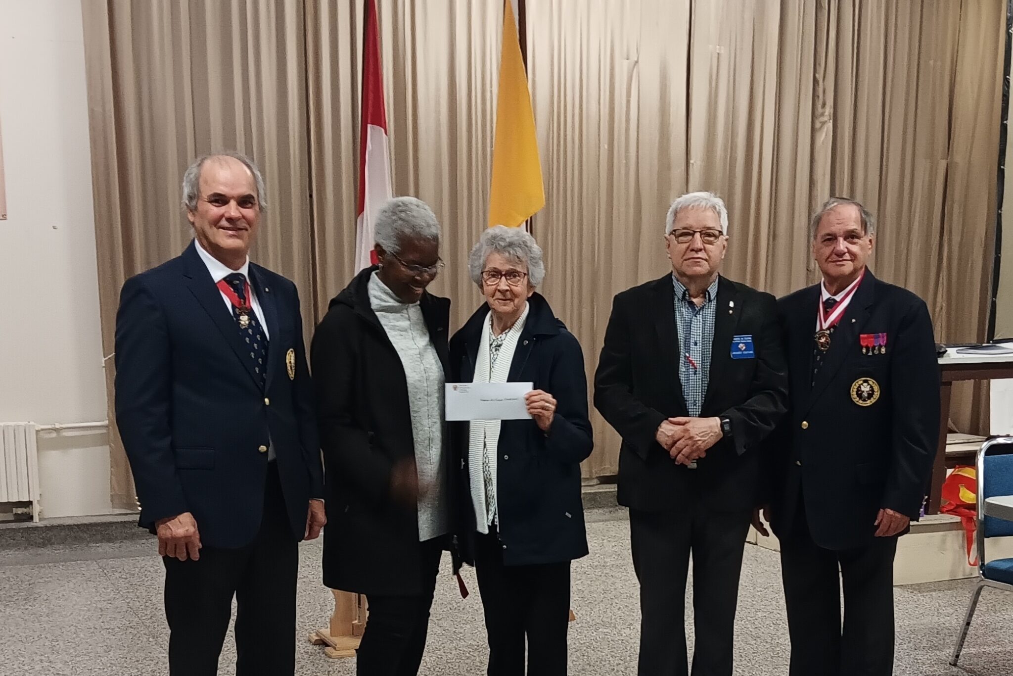 Remise du montant de 1086,20 $ pour le 150e anniversaire des Sœurs du St-Rosaire de Rimouski.