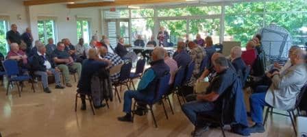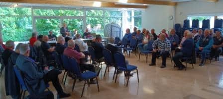 Photos 2 et 3 : vue d’ensemble des congressistes. Le vénérable secrétaire d’État et agent de liaison région09 donne de l’information venant de l’État sur les billets des œuvres, La composition du conseil État et Suprême la différence et rôle de chacun, et sur la vente des billets des œuvres rapports et transmissions de ceux-ci aux dates prévues.